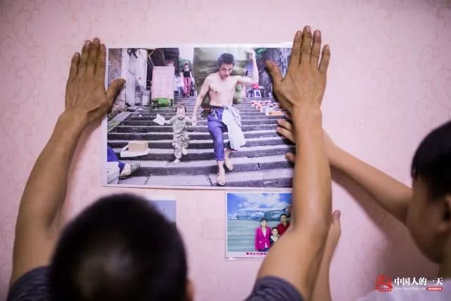 2017年父子俩一起将照片贴在卧室里,这也成了父子俩成长过程中最难忘的瞬间。